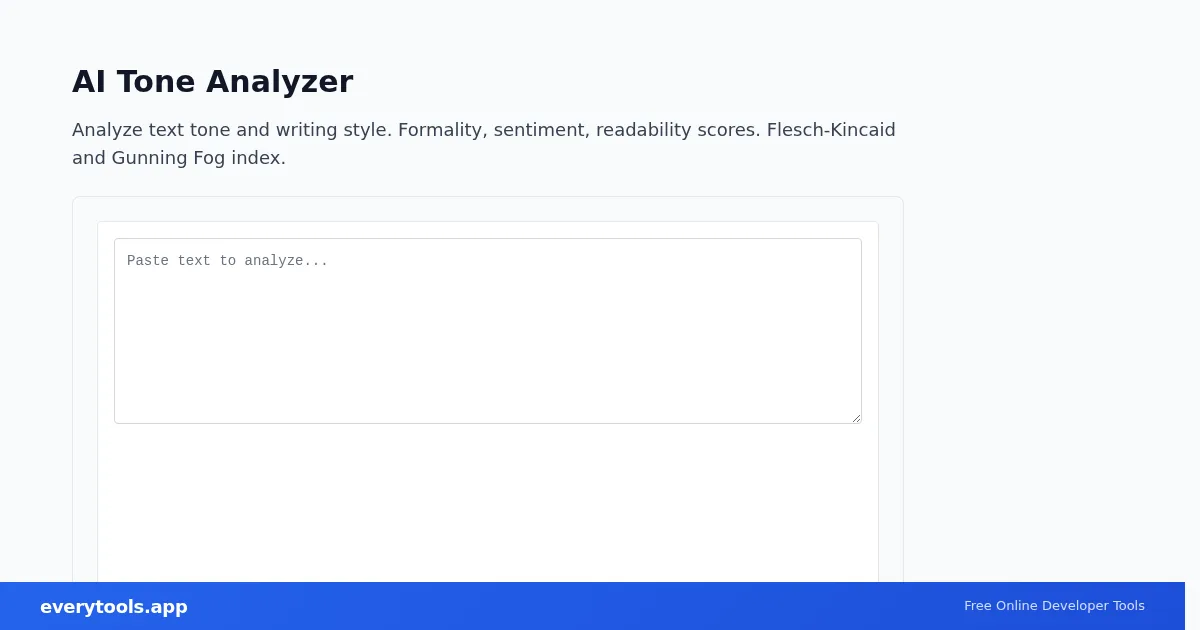 This free online ai tone analyzer runs in your browser. No installation, no signup. Paste your input above and get instant results. Works on desktop and mobile.